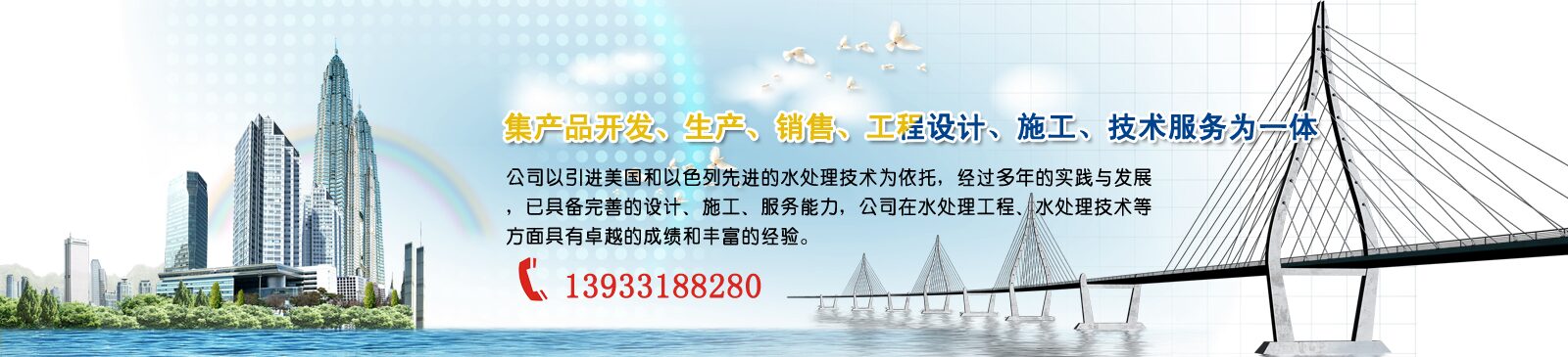 河北蓝星环保水务有限公司是一家围绕环保、水务,集产品开发、生产、销售、工程设计、施工、技术服务为一体的专业化公司。公司以引进美国和以色列先进的水处理技术为依托,经过多年的实践与发展,已具备完善的设计、施工、服务能力,公司在水处理工程(废水处理、中水回用、净水处理)、水处理技术(预处理、反渗透、超滤、混床、EDI)的开发应用、水处理药剂、水处理配件、家用纯水机、工程咨询、工程服务、培训等方面具有卓越的成绩和丰富的经验。